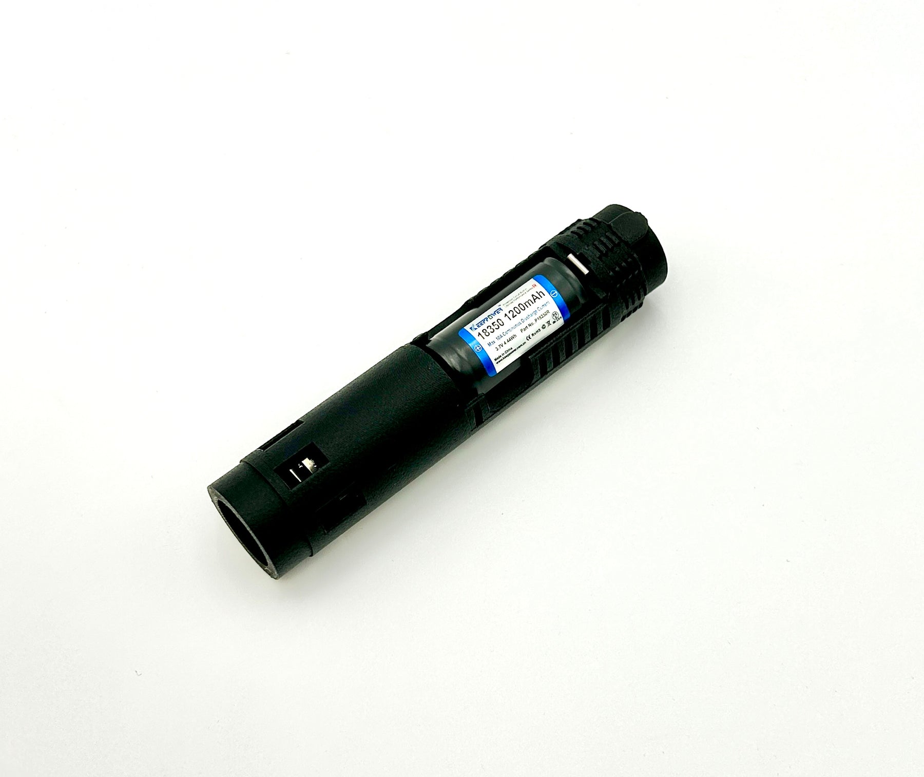 -removable 18650 button top protected cell for Proffie and GHV4 versions, removable 18350 button top protected cell for CFX version (Option 2 battery contacts included with chassis print)